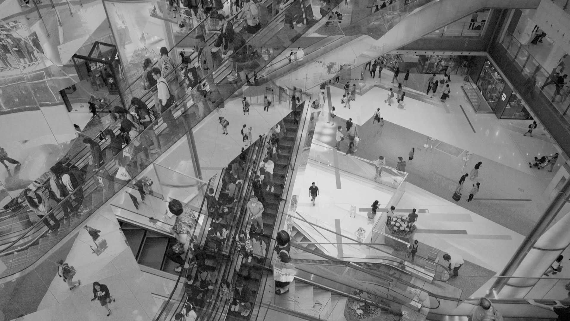 Partant de ce phénomène, l’œuvre retrace l’évolution architecturale de ces complexes commerciaux et réfléchit à la manière dont le centre commercial, en tant que forme spatiale, a évolué depuis ses racines coloniales de conquête vers une machine de consumérisme et de contrôle social. Mais les résultats escomptés de la conception spatiale peuvent être détournés, transformant ces espaces isolés et aseptisés en un terrain propice à l’action politique et à la dissidence. 香港示威者与警察冲突的画面构成了新冠疫情前最后阶段全球动荡最令人难忘的记忆,这些冲突奇怪地经常发生在空调购物中心的背景下。从这一现象出发,作品追溯了这些商业综合体的建筑演变,并思考购物中心作为一种空间形式,如何从其殖民征服的根源发展为消费主义和社会控制的机器。但是,空间设计的预期效果可能被颠覆,将这些隔离和无菌的空间转变为政治行动和异议活动的沃土。