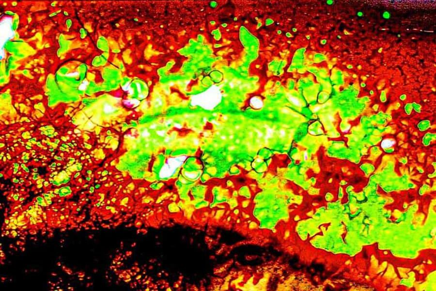 À travers l’évocation de la tension entre fugacité et continuité, le film déploie la dialectique de la destruction et de la métamorphose. Une extase pure et simple de l’intimité physique vue à travers des films en celluloïd, dans lesquels la vie de l’émulsion est en train de se décomposer au contact de gel hydroalcoolique, censés “tuer 99,9% des bactéries et des virus”. 一场关于枯树挣扎重生的超然冥想。对日常生活中表面看似琐碎的瞬间的一瞥。在胶片电影中观察身体亲密关系的纯粹狂喜,其中乳胶的生命正在腐朽:在封锁期间,电影镜头被消毒剂、表面清洁剂和手部消毒凝胶“消毒”,具体而言,是被声称“能杀死99.9%的细菌和病毒”的家用化学品,这有助于防止冠状病毒的传播。通过使有形的图像回归到无形的形状,在电影媒体的物理脆弱性中,观众可以产生对物质不断创生和溶解状态的幻觉感知。通过唤起短暂与连续之间的紧张关系,影片展现了毁灭与变形的辩证法。