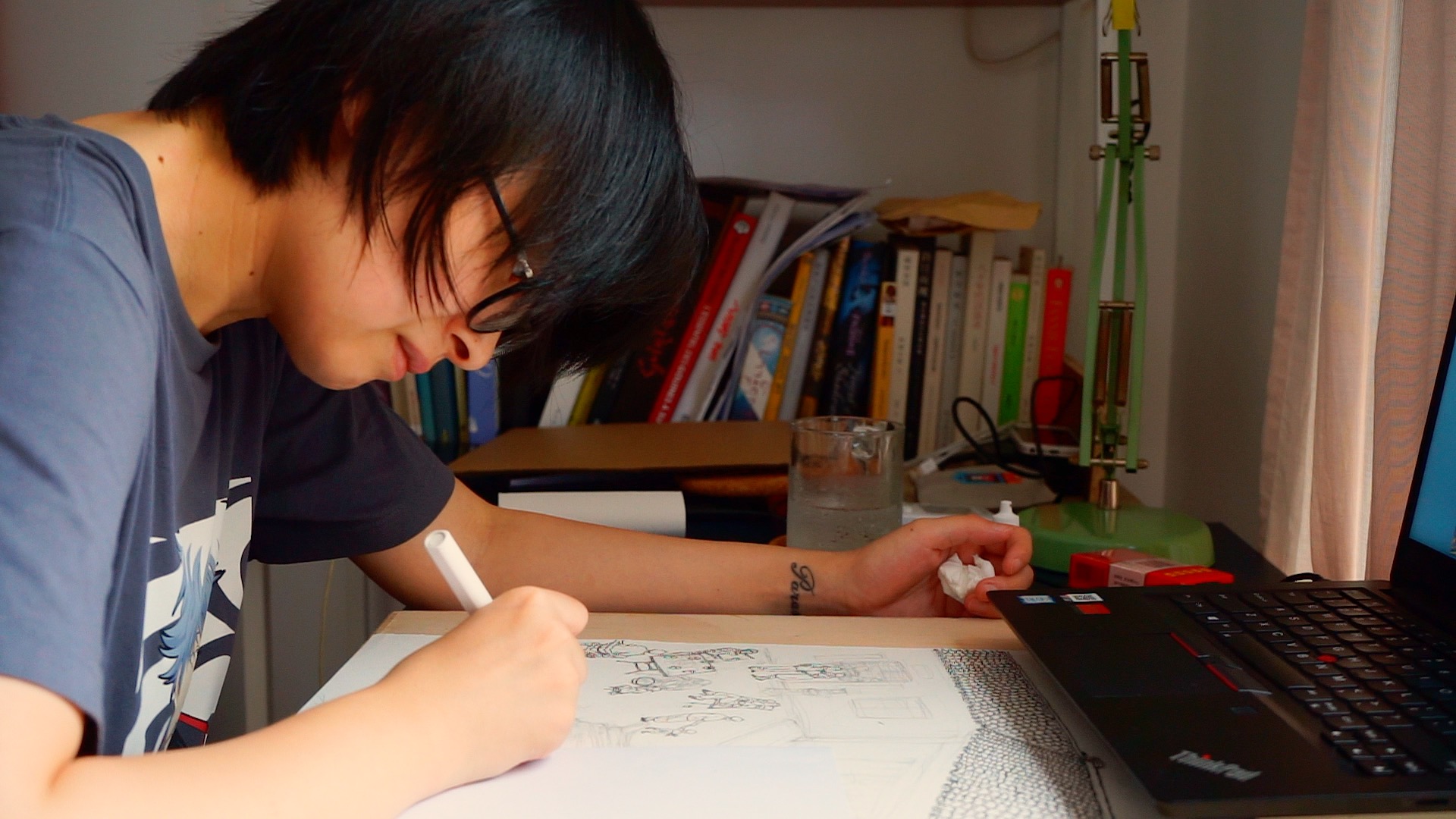 在中国南方一个沿海城市散步时,Leï偶然发现了一个历史街区。这让她想起了中国西南部她家乡的老街区。为了应对回到中国后的不适感,从法国的一个小镇到中国的一个大城市,她开始画她童年的房子。这个街区的河流成了她和Xiaotong散步的起点。从这个即将被拆除的街区出发,居民及他们的故事带领他们去往近处或远方的地方,甚至远至法国。这些交织的道路逐渐帮助他们在这个地方建立起自己的联系。
