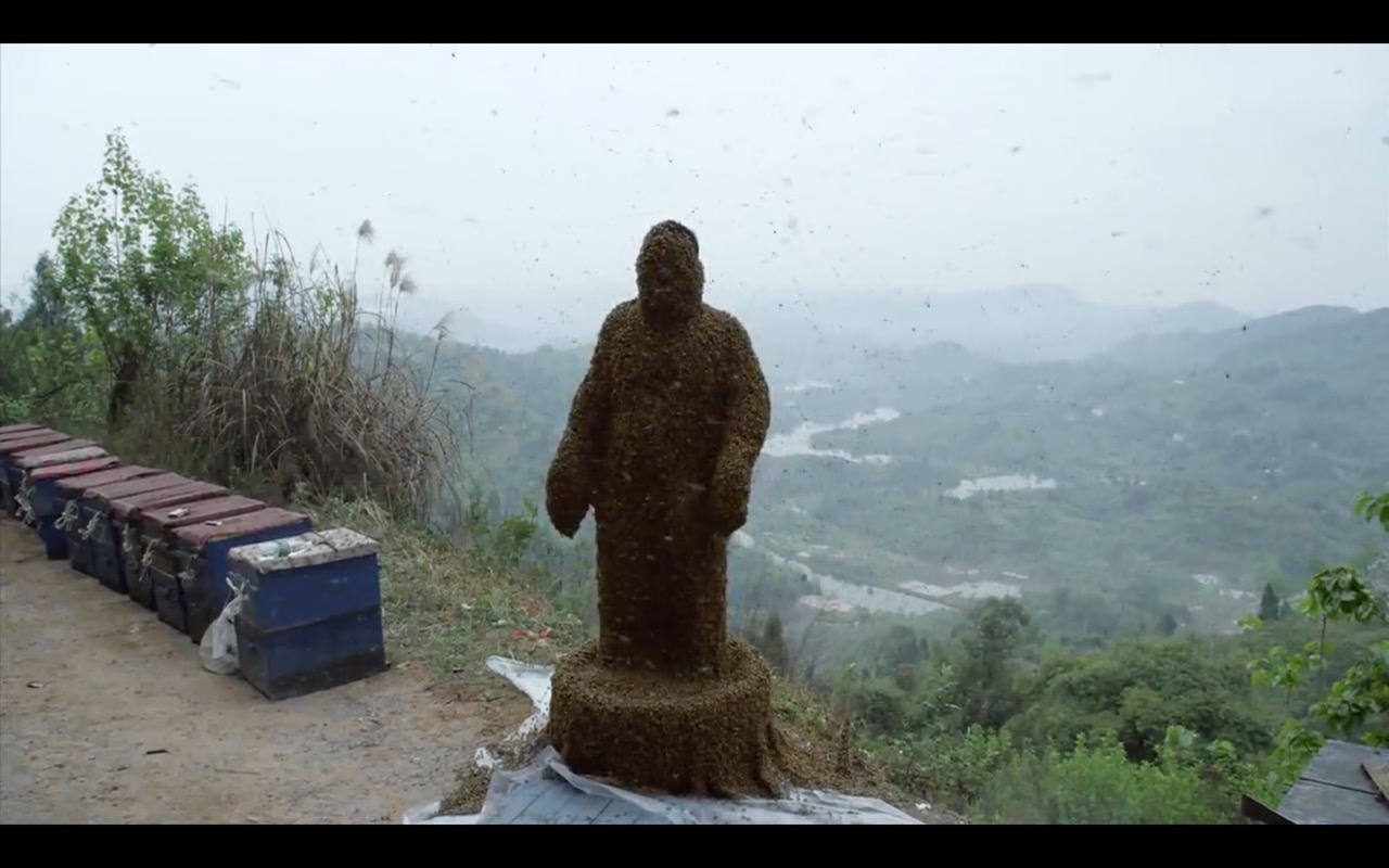 Dans l’espoir de retrouver un équilibre environnemental dans la vallée du Yangtze, Shé Zuǒ Bīn, apiculteur, s’ouvre à la transe et fait corps avec ses abeilles.