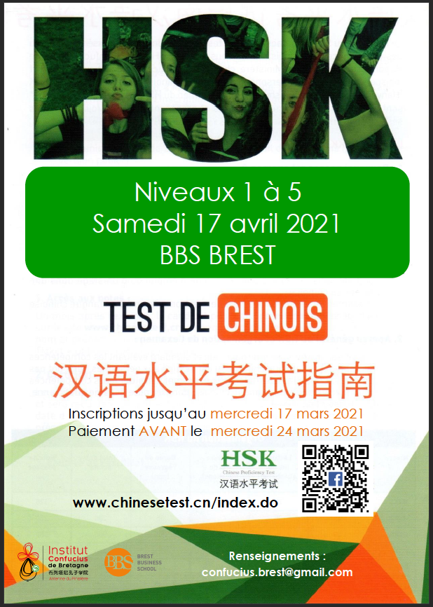 Une session d’examens HSK est prévu à Brest le samedi 17 avril 2021 à la Brest Business School